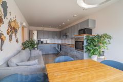 Предлагается уютная видовая квартира площадью 56,6 кв. м, расположенная на 5-м этаже. Панорамный вид из гостиной и спальни на перспективу реки Ждановки, окруженной зеленью и уходящей в сторону акватории Финского залива. Большие окна гостиной и спальни смотрят на юг и наполняют пространство светом и воздухом. В квартире выполнена свежая качественная отделка и полная меблировка. Установлена премиальная бытовая техника NEFF. Центральное кондиционирование. Теплые полы на лоджии, в прихожей и санузле. ''Леонтьевский Мыс'' расположен в одном из живописнейших мест Петроградской стороны, окруженный реками Малой Невкой и Ждановкой, он формирует полуостров комфорта для жизни и отдыха.Трехступенчатая система очистки воды, бесшумные скоростные лифты KONE, трехуровневый паркинг более чем на 700 машиномест призваны обеспечить комфорт проживания. На территории комплекса расположены детские игровые площадки, зоны отдыха и прогулок, рестораны, салоны красоты, бутики, кофейня, магазин фермерских продуктов, студия пилатеса, променад вдоль берега Малой Невки. Для безопасности проживающих функционирует система видеонаблюдения, работает служба круглосуточной охраны, осуществляющая контроль доступа.В непосредственной близости находятся несколько крупных спортивных объектов олимпийский Центр художественной гимнастики, ДЮСШ Локомотив, Ледовый дворец СКА, стадион Петровский в них можно найти множество занятий по душе для больших и маленьких спортсменов. В этой части Петроградской стороны расположены две из самых престижных школ города 56 и 610 гимназии. Транспортная логистика позволяет беспрепятственно добраться в исторический центр города или выехать загород. Мост Бетанкура, соединяющий район с Васильевским островом и ЗСД, позволяет в любое время суток добираться до аэропорта Пулково или пляжей Курортного района за 20-25 минут.