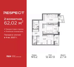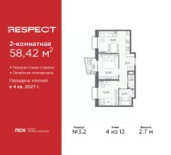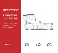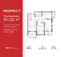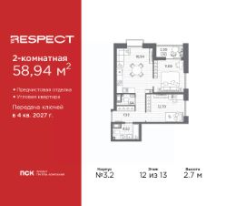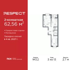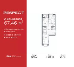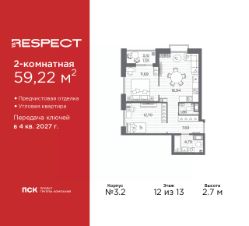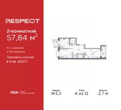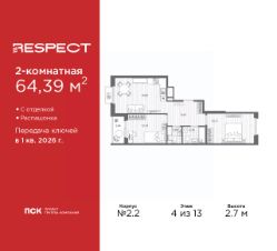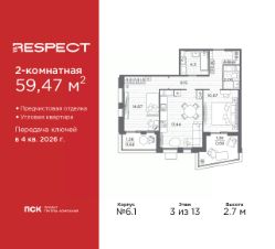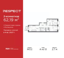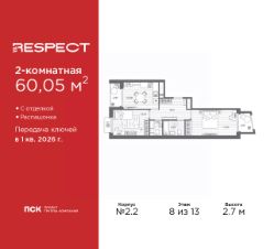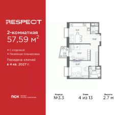 Двухкомнатная квартира от застройщика с отделкой в ЖК ''RESPECT'' на 4 этаже. Общая площадь: 57.59 кв.м., жилая: 25.54 кв.м., площадь просторной кухни-столовой: 15.11 кв.м. Комнаты изолированные, все окна выходят на одну сторону. В квартире один балкон, один совмещенный и один раздельный санузел. Высота потолков 2.7 м. Дом монолитный, многоподъездный, переменной этажности, от 8 до 13 этажей. Квартира находится в 1-й секции высотой 13 этажей в корпусе 3.3. На этаже 6 квартир. В подъезде 1 пассажирский и 1 грузовой лифт. Начало строительства - 3 квартал 2025 года. Окончание строительства - 4 квартал 2027 года. Оформление сделки по договору долевого участия. В шаговой доступности от жилого комплекса расположены станции метро (расстояние по прямой): ''Лесная'' (800 м), ''Площадь Мужества'' (1.4 км), ''Выборгская'' (1.9 км), также недалеко от этого корпуса находятся станции метро: ''Академическая'', ''Политехническая''. Квартал строится на Полюстровском пр, 87, в одной из самых востребованных локаций Петербурга. В 10 минутах пешком - метро ''Лесная'' и в 10 минутах на транспорте - Петроградская сторона. Высота домов от 7 до 13 этажей. На территории Respect строится школа на 1125 учащихся и детский сад на 240 мест. Запроектированы собственная газовая котельная, закрытая территория, дворы без машин и подземные паркинги с лифтами. Вентилируемые фасады облицованы клинкерным кирпичом. Дома из этого материала служат веками, являясь гордостью хозяев. Дизайн парадных зон и входных групп - сочетание лаконичности отделки и декоративных элементов с текстурами из натурального камня и дерева с приглушенной подсветкой теплым светом. Во входных группах расположены гостевые зоны с мягкой мебелью. Вся территория квартала будет связана единой концепцией благоустройства, разработанной ландшафтным бюро L.BURO. В основе - идея создания увлекательного ландшафтного пространства для насыщенной жизни, включающего в себя пейзажные зоны, современные архитектурные композиции, открытые террасы на стилобатах с зонами отдыха и парклетами, спортивными площадками. Это пространство для людей всех возрастов и различных увлечений. На эксплуатируемой кровле на уровне первого этажа в домах 1 и 4 будут обустроены общественные видовые террасы. В квартале запроектированы внутренние закрытые территории дворов домов без доступа автомобилей и безбарьерная среда для велосипедистов и колясок. Предусмотрены IP-домофония с функцией дистанционного открывания калиток и парадных, а также дистанционный сбор показаний счетчиков и мобильное приложение для жителей. Для безопасности жителей квартала - круглосуточное видеонаблюдение и служба охраны. В каждой квартире предусмотрены внешние корзины для кондиционеров. #Z6bc3w