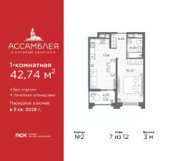 Продается 2-комн. квартира в Клубный квартал ''Ассамблея'' на 11 этаже. Квартира без отделки, новый собственник может сделать ремонт по индивидуальному проекту. Общая площадь: 74.38 кв.м., жилая: 32.74 кв.м., площадь просторной кухни-столовой: 18.96 кв.м. Квартира - распашонка, без проходных комнат, окна выходят на paзные стороны дома. В квартире одна лоджия, один совмещенный и один раздельный санузел. Высота потолков 3 м. Дом монолитный, двухподъездный, высотой 12 этажей. Квартира находится во 2-й секции в корпусе 3. На этаже 6 квартир. В подъезде 1 пассажирский и 1 грузовой лифт. Начало строительства - 2 квартал 2025 года. Окончание строительства - 3 квартал 2028 года. Оформление сделки по договору долевого участия. В шаговой доступности от жилого комплекса имеются станции метро (расстояние по прямой): ''Горный институт'' (1.0 км), ''Василеостровская'' (1.4 км), ''Приморская'' (1.5 км), также недалеко от этого корпуса расположены станции метро: ''Спортивная'', ''Чкаловская''. ''Клубный квартал Ассамблея'' — проект бизнес-класса на Васильевском острове, в самом сердце исторического Петербурга. Комплекс состоит из пяти корпусов переменной этажности — от 7 до 12 этажей — с выразительной архитектурой в стиле неомодернизма: светлый клинкер, панорамное остекление, просторное лобби с потолками высотой почти 8 метров. Потолки — до 3,2 метров. Подземный паркинг на 667 машиномест. Комфорт и инфраструктура Проект ориентирован на комфортную городскую жизнь. В закрытом дворе — ландшафтное озеленение, современные детские и спортивные площадки. Внутренний клуб для резидентов включает коворкинг, переговорные, кинозал, фитнес и бьюти-зону. IP-домофония с просмотром камер видеонаблюдения, дистанционное открывание дверей и доступа на территорию и в парадную со смартфона и планшета, просмотр показаний счетчиков, приложение для жителей PSK Home. Локация Расположение на Васильевском острове — сильная сторона проекта. До четырех станций метро (''Горный институт'', ''Василеостровская'', ''Спортивная'', ''Приморская'') — 515 минут пешком. В шаговой доступности — зелёные зоны, культурные учреждения, в том числе сад ''Василеостровец'' и ДК имени Кирова. Основные магистрали Большой, Средний и Малый проспекты, Наличная и Уральская улицы. Съезд на ЗСД расположен недалеко от станции метро ''Приморская'', близ береговой линии. Благовещенский и Дворцовый мосты соединяют остров с центром города, а мосты Тучков, Биржевой и Бетанкура — с Петроградской стороной. Застройщик Группа компаний ПСК является одной из ведущих девелоперских компаний Санкт Петербурга. На протяжении 18 лет она возводит в Северной столице качественное жилье премиум, бизнес и комфорт-класса, социальные объекты школы и детские сады, апарт-отели и торговые центры. Является шестикратным обладателем золотого знака ''Надежный застройщик России''. #Z6b8F2