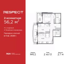 Продается 2-комн. квартира с отделкой в ЖК ''RESPECT'' на 2 этаже. Общая площадь: 56.2 кв.м., жилая: 23.32 кв.м., площадь просторной кухни-столовой: 15.05 кв.м. Комнаты изолированные, все окна выходят на одну сторону. В квартире один балкон и одна лоджия, два совмещенных санузла. Наличие в квартире террасы дает возможность для обустройства дополнительной площади. Высота потолков 2.7 м. Квартира находится в корпусе 6. Дом монолитный, одноподъездный, высотой 13 этажей. На этаже 8 квартир. В подъезде 1 пассажирский и 1 грузовой лифт. Окончание строительства - 4 квартал 2026 года. Оформление сделки по договору долевого участия. В шаговой доступности от жилого комплекса расположены станции метро (расстояние по прямой): ''Лесная'' (800 м), ''Площадь Мужества'' (1.4 км), ''Выборгская'' (1.9 км), также недалеко от этого корпуса находятся станции метро: ''Академическая'', ''Политехническая''. Квартал строится на Полюстровском пр, 87, в одной из самых востребованных локаций Петербурга. В 10 минутах пешком - метро ''Лесная'' и в 10 минутах на транспорте - Петроградская сторона. Высота домов от 7 до 13 этажей. На территории Respect строится школа на 1125 учащихся и детский сад на 240 мест. Запроектированы собственная газовая котельная, закрытая территория, дворы без машин и подземные паркинги с лифтами. Вентилируемые фасады облицованы клинкерным кирпичом. Дома из этого материала служат веками, являясь гордостью хозяев. Дизайн парадных зон и входных групп - сочетание лаконичности отделки и декоративных элементов с текстурами из натурального камня и дерева с приглушенной подсветкой теплым светом. Во входных группах расположены гостевые зоны с мягкой мебелью. Вся территория квартала будет связана единой концепцией благоустройства, разработанной ландшафтным бюро L.BURO. В основе - идея создания увлекательного ландшафтного пространства для насыщенной жизни, включающего в себя пейзажные зоны, современные архитектурные композиции, открытые террасы на стилобатах с зонами отдыха и парклетами, спортивными площадками. Это пространство для людей всех возрастов и различных увлечений. На эксплуатируемой кровле на уровне первого этажа в домах 1 и 4 будут обустроены общественные видовые террасы. В квартале запроектированы внутренние закрытые территории дворов домов без доступа автомобилей и безбарьерная среда для велосипедистов и колясок. Предусмотрены IP-домофония с функцией дистанционного открывания калиток и парадных, а также дистанционный сбор показаний счетчиков и мобильное приложение для жителей. Для безопасности жителей квартала - круглосуточное видеонаблюдение и служба охраны. В каждой квартире предусмотрены внешние корзины для кондиционеров. #Z6BbOO