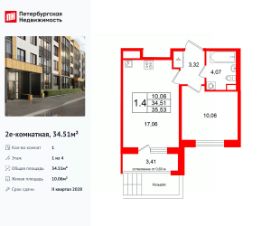 34 м2