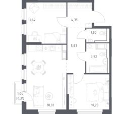 1-02, Продается отличная 2-х комнатная квартира в хорошем состоянии. Общая площадь 56,8 кв.м, комнаты смежные 18,8+10,9 кв.м. с двумя застекленными лоджиями, кухня 15,2 кв.м.В квартире остается встроенная кухня.В шаговой доступности школы, детские сады, магазины, парк.Во дворе большая детская площадка.
