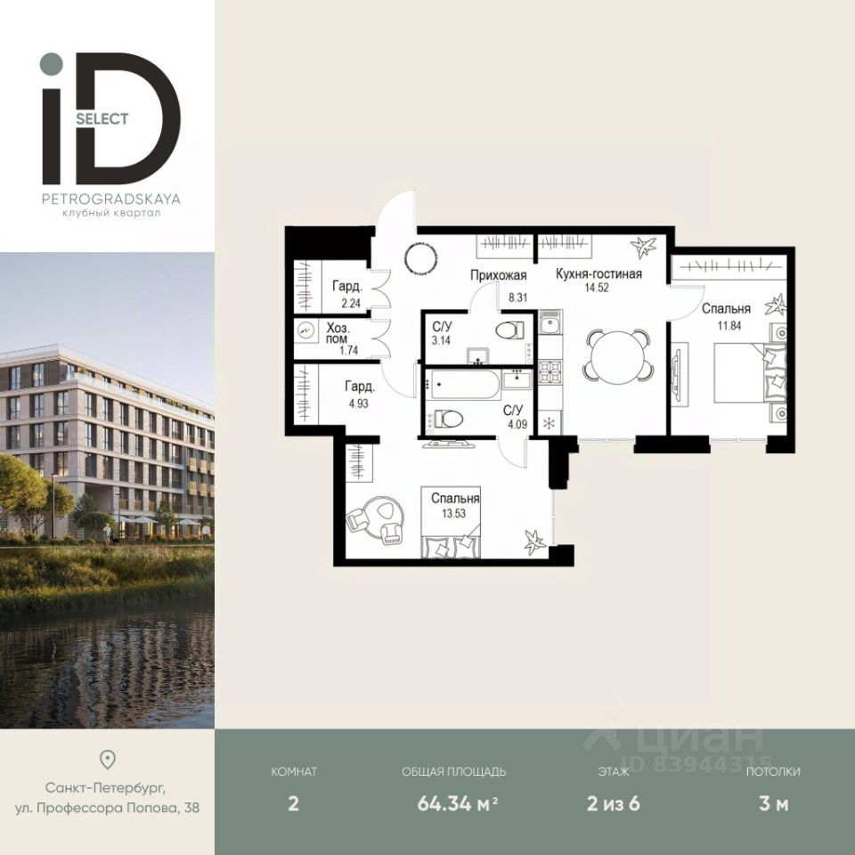 64 м² · Этаж 2 из 6