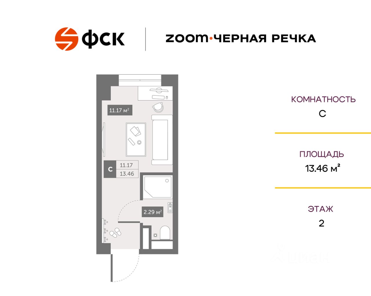 13 м² · Этаж 2 из 13