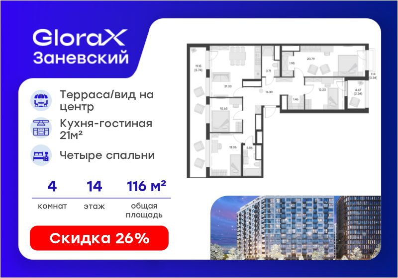 116 м² · Этаж 14 из 14