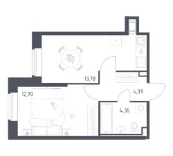 В продаже 1-комнатная квартира в корпусе 6-7 ЖК 'Живи! В Рыбацком'. Квартира располагается на 12 этаже, общая площадь 33.5 м2.