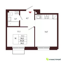 1-к квартира Показать на карте