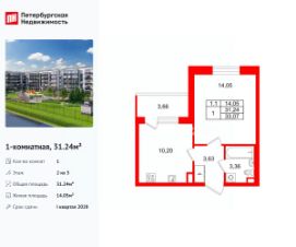Продается уютная 1-комнатная квартира от застройщика в жилом комплексе ''Парадный ансамбль'' в престижном Московском районе.До метро можно добраться на транспорте всего за 20 минут.Удобная, классическая планировка, кухня 10.2 м², вместительная прихожая 3.63 м². Общая площадь квартиры - 31.24 м², жилая 14.05 м², высота потолка 2.77 м.Квартира продается с отделкой ''Норд Лайн серый''.Что особенного в ЖК ''Парадный ансамбль''?• Инновационный Лицей Setl с оригинальной архитектурной концепцией и уникальной образовательной средой• Масштабное малоэтажное строительство в престижном Московском районе• Рекреационные зоны: парадный парк в центре квартала, ручей с собственной набережной, центральная площадь, ресторанный комплекс и пешеходный бульвар• Фасады из керамогранита и кирпича с яркими и акцентными входными группами• Две самые большие площадки Setl Kids и Setl Sport• Уникальные квартиры.High Flat на последних этажах, палисадники у квартир на первом этаже, семейные секции, квартиры с саунами и окном в ванной