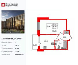 Продается просторная 1-комнатная квартира от застройщика в жилом комплексе ''Парадный ансамбль'' в престижном Московском районе.До метро можно добраться на транспорте всего за 20 минут.Удобная, классическая, функциональная европланировка, большая кухня-гостиная 17.43 м², просторная прихожая 5.65 м². Общая площадь квартиры - 37.55 м², жилая 10.55 м², высота потолка 3.07 м.Квартира продается с отделкой ''Норд Лайн светлый''.Что особенного в ЖК ''Парадный ансамбль''?• Инновационный Лицей Setl с оригинальной архитектурной концепцией и уникальной образовательной средой• Масштабное малоэтажное строительство в престижном Московском районе• Рекреационные зоны: парадный парк в центре квартала, ручей с собственной набережной, центральная площадь, ресторанный комплекс и пешеходный бульвар• Фасады из керамогранита и кирпича с яркими и акцентными входными группами• Две самые большие площадки Setl Kids и Setl Sport• Уникальные квартиры.High Flat на последних этажах, палисадники у квартир на первом этаже, семейные секции, квартиры с саунами и окном в ванной