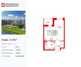Продается уютная студия от застройщика в жилом комплексе ''Парадный ансамбль'' в престижном Московском районе.До метро можно добраться на транспорте всего за 20 минут.Удобная, классическая, функциональная европланировка, вместительная прихожая 3.09 м². Общая площадь студии - 21.35 м², жилая 15.05 м², высота потолка 3.07 м.Квартира продается с отделкой ''NORD LINE WHITE''.Что особенного в ЖК ''Парадный ансамбль''?• Инновационный Лицей Setl с оригинальной архитектурной концепцией и уникальной образовательной средой• Масштабное малоэтажное строительство в престижном Московском районе• Рекреационные зоны: парадный парк в центре квартала, ручей с собственной набережной, центральная площадь, ресторанный комплекс и пешеходный бульвар• Фасады из керамогранита и кирпича с яркими и акцентными входными группами• Две самые большие площадки Setl Kids и Setl Sport• Уникальные квартиры.High Flat на последних этажах, палисадники у квартир на первом этаже, семейные секции, квартиры с саунами и окном в ванной