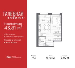 1-комн. квартира в Клубный квартал ''Ассамблея'' на 11 этаже. Квартира без отделки, полностью готова к ремонту. Общая площадь: 46.54 кв.м., жилая: 13.85 кв.м., площадь просторной кухни-столовой: 21.16 кв.м. Все окна выходят на одну сторону. В квартире одна лоджия, один совмещенный санузел. Высота потолков 3.0 м. Дом монолитный, черырехподъездный, высотой 12 этажей. Квартира находится в 4-й секции в корпусе 5. На этаже 10 квартир. В подъезде 1 пассажирский и 1 грузовой лифт. Окончание строительства - 3 квартал 2028 года. Оформление сделки по договору долевого участия. В шаговой доступности от жилого комплекса имеются станции метро (расстояние по прямой): ''Горный институт'' (1.0 км), ''Василеостровская'' (1.4 км), ''Приморская'' (1.5 км), также недалеко от этого корпуса расположены станции метро: ''Спортивная'', ''Чкаловская''. ''Клубный квартал Ассамблея'' — проект бизнес-класса на Васильевском острове, в самом сердце исторического Петербурга. Комплекс состоит из пяти корпусов переменной этажности — от 7 до 12 этажей — с выразительной архитектурой в стиле неомодернизма: светлый клинкер, панорамное остекление, просторное лобби с потолками высотой почти 8 метров. Потолки — до 3,2 метров. Подземный паркинг на 667 машиномест. Комфорт и инфраструктура Проект ориентирован на комфортную городскую жизнь. В закрытом дворе — ландшафтное озеленение, современные детские и спортивные площадки. Внутренний клуб для резидентов включает коворкинг, переговорные, кинозал, фитнес и бьюти-зону. IP-домофония с просмотром камер видеонаблюдения, дистанционное открывание дверей и доступа на территорию и в парадную со смартфона и планшета, просмотр показаний счетчиков, приложение для жителей PSK Home. Локация Расположение на Васильевском острове — сильная сторона проекта. До четырех станций метро (''Горный институт'', ''Василеостровская'', ''Спортивная'', ''Приморская'') — 515 минут пешком. В шаговой доступности — зелёные зоны, культурные учреждения, в том числе сад ''Василеостровец'' и ДК имени Кирова. Основные магистрали Большой, Средний и Малый проспекты, Наличная и Уральская улицы. Съезд на ЗСД расположен недалеко от станции метро ''Приморская'', близ береговой линии. Благовещенский и Дворцовый мосты соединяют остров с центром города, а мосты Тучков, Биржевой и Бетанкура — с Петроградской стороной. Застройщик Группа компаний ПСК является одной из ведущих девелоперских компаний Санкт Петербурга. На протяжении 18 лет она возводит в Северной столице качественное жилье премиум, бизнес и комфорт-класса, социальные объекты школы и детские сады, апарт-отели и торговые центры. Является шестикратным обладателем золотого знака ''Надежный застройщик России''. #z6bAOv