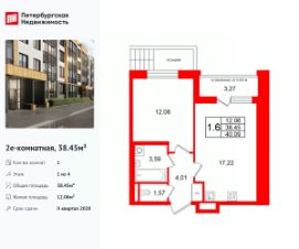 Продается просторная 1-комнатная квартира от застройщика в жилом комплексе ''Univer City'' в на юге Санкт-Петербурга.До метро можно добраться на транспорте всего за 30 минут.Удобная, классическая, функциональная европланировка, большая кухня-гостиная 17.22 м², вместительная прихожая 4.01 м². Общая площадь квартиры - 38.45 м², жилая 12.06 м², высота потолка 2.77 м.Квартира продается с отделкой ''Норд Лайн светлый''.Что особенного в ЖК ''Univer City''?• Малоэтажное строительство• Скандинавские фасады с отделкой керамогранитом, акцентные входные группы• Закрытые внутренние дворы без машин• Пешеходный променад с тематическими зонами, еловый сквер и яблоневый сад• Univer Park, включая SetlSport и SetlKids, площадку для выгула собак и зоны отдыха• Инновационный Лицей Setl с оригинальной архитектурной концепцией и уникальной образовательной средой