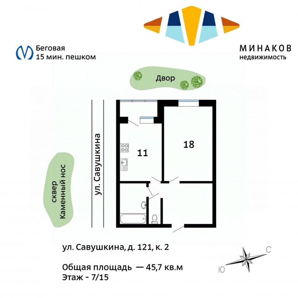 1-к, Савушкина, 121 корп. 2