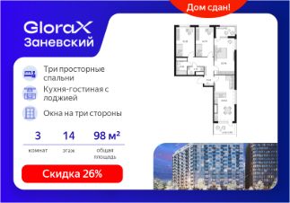 Продается апартамент-студия на 11-м этаже в сданном Апарт-комплексе бизнес-класса ''GloraX Заневский''. Ключи сразу! Общая площадь лота составляет 29,77 кв. м, из которых 24,84 кв. м отведено под жилую. Номер апартамента - 1 106.Преимущества:- Полная чистовая отделка- Возможность покупки меблировка и техника- Вход по ключ-карте- Прачечная на 1 этаже- Возможность дозаказа отельного сервиса- Программы доходности - Летний бар и променад- Воркаут площадка- Pet-friendlyАпартаменты ''GloraX Заневский'' - проект бизнес-класса с развитой инфраструктурой, удовлетворяющей все потребности самых взыскательных гостей. Располагается в одном из наиболее перспективных, районов Петербурга в 2х минутах от метро ''Ладожская'' и в 10 минутах от Невского проспекта.В ''GloraX Заневский'' есть все, что необходимо для комфортной жизни, работы и отдыха. Инфраструктура, покрывающая все потребности и ожидания собственников и арендаторов. В радиусе 150 метров находятся супермаркеты с возможностью доставки продуктов прямо до дверей апартаментов.На 1000 кв. м. общественных пространств расположится уютный лобби-бар, ресторан мировой кухни на 80 человек и оборудованные коворкинги.В апартаментах ''GloraX Заневский'' выполнена современная отделка с использованием высококачественных экологичных материалов. В проекте предусмотрен подземный отапливаемый паркинг на 100 мест, куда можно спуститься на лифте прямо от дверей апартаментов.Цена указана при 100% оплате или стандартной ипотеке. Узнайте подробности в Отделе продаж.