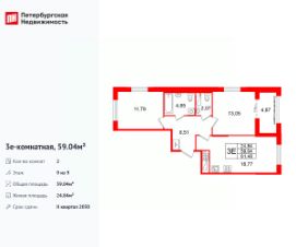 Продается уютная 2-комнатная квартира от застройщика в жилом комплексе ''Кристалл Холл'' в Адмиралтейском районе.До метро можно добраться Тип 1 всего за 15 минут.Удобная, классическая, функциональная европланировка, большая кухня-гостиная 18.77 м², просторная прихожая 8.51 м². Общая площадь квартиры - 59.04 м², жилая 24.84 м², высота потолка 3.2 м.Квартира продается с отделкой ''NORD LINE BUSINESS''.