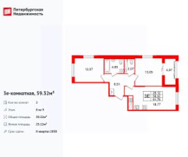 Продается просторная 2-комнатная квартира от застройщика в жилом комплексе ''Кристалл Холл'' в Адмиралтейском районе.До метро можно добраться Тип 1 всего за 15 минут.Удобная, классическая, функциональная европланировка, большая кухня-гостиная 18.77 м², просторная прихожая 8.51 м². Общая площадь квартиры - 59.32 м², жилая 25.12 м², высота потолка 3 м.Квартира продается с отделкой ''NORD LINE BUSINESS''.