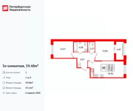 Продается просторная 2-комнатная квартира от застройщика в жилом комплексе ''Кристалл Холл'' в Адмиралтейском районе.До метро можно добраться Тип 1 всего за 15 минут.Удобная, классическая, функциональная европланировка, большая кухня-гостиная 18.93 м², просторная прихожая 8.51 м². Общая площадь квартиры - 59.48 м², жилая 25.12 м², высота потолка 3 м.Квартира продается с отделкой ''NORD LINE BUSINESS''.