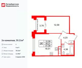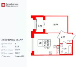 Продается просторная 1-комнатная квартира от застройщика в жилом комплексе ''Кристалл Холл'' в Адмиралтейском районе.До метро можно добраться Тип 1 всего за 15 минут.Удобная, классическая, функциональная европланировка, большая кухня-гостиная 17.97 м², просторная прихожая 4.23 м². Общая площадь квартиры - 39.17 м², жилая 12.59 м², высота потолка 3 м.Квартира продается с отделкой ''NORD LINE BUSINESS''.