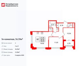 Продается уютная 2-комнатная квартира от застройщика в жилом комплексе ''Кристалл Холл'' в Адмиралтейском районе.До метро можно добраться Тип 1 всего за 15 минут.Удобная, классическая, функциональная европланировка, большая кухня-гостиная 19.92 м², просторная прихожая 8.78 м². Общая площадь квартиры - 56.39 м², жилая 21.04 м², высота потолка 3 м.Квартира продается c черновой отделкой.