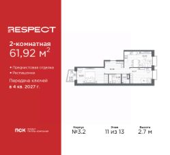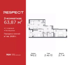 Продается 2-комн. квартира с предчистовой отделкой в ЖК ''RESPECT'' на 8 этаже. Общая площадь: 68.07 кв.м., жилая: 28.72 кв.м., площадь просторной кухни-столовой: 15.47 кв.м. Квартира - распашонка, без проходных комнат, окна выходят на paзные стороны дома. В квартире одна лоджия, один раздельный санузел. Высота потолков 2.7 м. Квартира будет сдана с отделкой WHITE BOX, в которую включены следующие виды работ:- заливка стяжки,- установлена система отопления квартиры,- подготовлены потолки,- все стены выровнены, загрунтованы и отштукатурены,- электрическая проводка разведена по комнатам.Квартира будет готова к чистовой отделке. Дом монолитный, многоподъездный, переменной этажности, от 10 до 13 этажей. Квартира находится в 1-й секции высотой 13 этажей в корпусе 3.2. На этаже 5 квартир. В подъезде 1 пассажирский и 1 грузовой лифт. Начало строительства - 3 квартал 2025 года. Окончание строительства - 4 квартал 2027 года. Оформление сделки по договору долевого участия. В шаговой доступности от жилого комплекса расположены станции метро (расстояние по прямой): ''Лесная'' (800 м), ''Площадь Мужества'' (1.4 км), ''Выборгская'' (1.9 км), также недалеко от этого корпуса расположены станции метро: ''Академическая'', ''Политехническая''. Жилой квартал ''RESPECT'' строится на Полюстровском пр, 87, в одной из самых востребованных локаций Петербурга. В 10 минутах пешком - метро ''Лесная'' и в 10 минутах на транспорте - Петроградская сторона. Высота домов от 7 до 13 этажей. Квартиры сдаются с отделкой white box и с чистовой отделкой. На территории Respect строится школа на 1125 учащихся и детский сад на 240 мест. Запроектированы собственная газовая котельная, закрытая территория, дворы без машин и подземные паркинги с лифтами.В проекте предусмотрены трапециевидные балконы или остекленные лоджии, которые, с одной стороны, исключают монотонность фасада, являясь декоративными элементами, с другой дополнительным функциональным пространством в квартирах. Цветовая гармония фасадов каждого дома раскрывает характер квартала. Коричневый цвет клинкерного кирпича со структурой водяных штрихов — цвет уюта и безопасности, сдержанности и надёжности. Вентилируемые фасады облицованы клинкерным кирпичом. Его высокая прочность позволяет давать 100 лет гарантии на этот материал. Водопоглощение клинкерного кирпича составляет менее 5%, за счет чего у него высокая теплопроводность и прочность. В квартале запроектированы внутренние закрытые территории дворов домов без доступа автомобилей и безбарьерная среда для велосипедистов и колясок. Предусмотрены IP-домофония с функцией дистанционного открывания калиток и парадных, а также дистанционный сбор показаний счетчиков и мобильное приложение для жителей. Для безопасности жителей квартала - круглосуточное видеонаблюдение и служба охраны. В каждой квартире предусмотрены внешние корзины для кондиционеров. Вся территория квартала будет связана единой концепцией благоустройства, разработанной ландшафтным бюро L.BURO. На эксплуати
