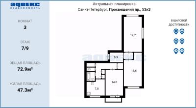 Добрый день! Продаем ТРЕХ-комнатную квартиру с видом в ТИХИЙ двор!Кстати, если Вы сейчас продаёте свою квартиру, то мы можем сразу КУПИТЬ её по программе Trade-In :)Деятельность нашего агентства застрахована на 20 000 000 ?. Будем рады покупкам с нами и у нас!А теперь, к объявлению:!ПРОДАЖА БЕЗ КОМИССИИ!Описание и фотографии соответствуют действительности.ПРО ДОКУМЕНТЫ:- У квартиры ОДИН совершеннолетний собственник.- Покажем все документы.- У квартиры нет обременений.- При покупке не был использован материнский капитал.- В договоре купли-продажи укажем ПОЛНУЮ стоимость.- Квартира подходит под ИПОТЕКУ, если что, БЕСПЛАТНО поможем с одобрением :)ПРО КВАРТИРУ: - Квартира очень УЮТНАЯ и действительно с КОМФОРТНОЙ планировкой.- Спальная комната (10.0м²) ПРАВИЛЬНОЙ формы, что позволяет удобно расставить мебель.- В КУХНЕ (7.1м²) располагается полноценный кухонный гарнитур, обеденная зона. - В кухне функционален и продуман каждый метр, сделана удобная РАЗВОДКА электрики, есть вся необходимая ТЕХНИКА.- Спальная комната (9.9м²) имеет ПРАВИЛЬНУЮ форму. В ней установлен вместительный шкаф, кровать и рабочая зона.- В ПРИХОЖЕЙ располагается большой ШКАФ. - В квартире раздельный сан-узел. При этом и туалет и ванная комната достаточно просторны.- Со спальной комнаты (9.9м²) есть выход на балкон.- Окна квартиры выходят на юг и на восток: летом не жарит солнце, при этом всегда светло и шикарные РАССВЕТЫ :) - В квартиру можно заехать и жить, в спальных комнатах выполнен свежий ремонт. На полу в спальных комнатах лежит ЛАМИНАТ. Санузлы отделаны ПЛИТКОЙ.ПРО ДОМ И ИНФРАСТРУКТУРУ:- Расположение дома - является одним из КЛЮЧЕВЫХ преимуществ квартиры.- Инфраструктура локации - полностью сформирована.- Рядом с домом находятся: Поликлиника, больница, школы, детские сады, спортивные центры.- Красивейший Сад Прометей прудом, храмом и аллеей - в 8 минутах пешком.- Рядом Муринский парк с речкой, озером и смотровыми площадками - в 18 минутах пешком.До м. Проспект Просвещения - 10 минут на машине.До м. Гражданский проспект - 10 минут на машине.До центра - 48 минут на метро, или 37 на автомобиле.Звоните! БЕСПЛАТНО ПРОКОНСУЛЬТИРУЮ по сделке.