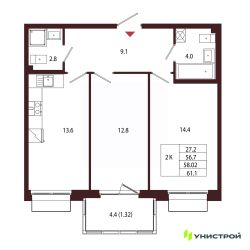 2-к квартира Показать на карте