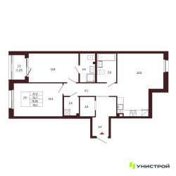2-к квартира Показать на карте
