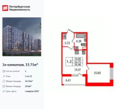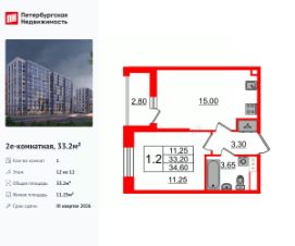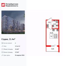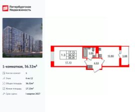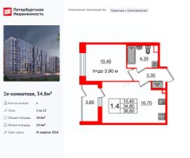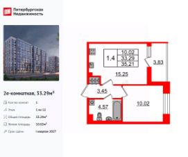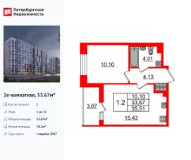 Продается уютная 1-комнатная квартира от застройщика в жилом комплексе ''Бионика Заповедная'' в динамичном Приморском районе.До метро можно добраться на транспорте всего за 11 минут.Удобная, классическая, функциональная европланировка, большая кухня-гостиная 15.43 м², просторная прихожая 4.13 м². Общая площадь квартиры - 33.67 м², жилая 10.1 м², высота потолка 2.77 м.Квартира продается с отделкой ''Норд Лайн светлый плюс''.Что особенного в ЖК ''Бионика Заповедная''?• Оазис в городе 3 минуты пешком до Новоорловского заказника (140 ГА)• Захватывающие виды из окон на хвойный лесопарк• Всесезонный ''Заповедный парк'' во дворе площадью 23000 кв.м.• 5 единых входных групп с авторским дизайном и лаундж-зонами, сити-виллы на первых этажах с палисадниками и высотой потолков до 4 м• Места притяжения: фонтан ''Бионика'', спортивный кластер со скейт-парком, фотозоны с арт-объектами