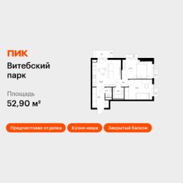 Продаётся 2-комн. квартира площадью 52,9 кв.м на 4 этаже 12 этажного дома (Корпус 6, Секция 1) проекта ПИК Витебский парк. Светлый просторный подъезд на уровне земли, функциональная планировка, большие окна, предчистовая отделка. Жилой квартал ''Витебский парк'' находится во Фрунзенском районе Санкт-Петербурга, в 15 минутах пешком от метро ''Обводный канал''. А в 2027 году всего в паре минут от проекта планируют открыть станцию метро ''Боровая''. В квартал входят 3 детских сада, школа и 7 жилых домов с дворами-парками, куда не могут зайти посторонние люди и заехать автомобили. Школа на 1250 мест и детский сад на 350 мест откроются одновременно с заселением первой очереди, это значит, что жители проекта смогут отдать своих детей в новые образовательные учреждения на территории квартала. Во дворах приятно отдыхать, знакомиться с соседями и даже заниматься йогой, а для детей мы построим детские площадки. Рядом появятся современные спортивные площадки. На первых этажах домов откроются магазины, кафе и другие сервисы. Через весь жилой район протянется широкий пешеходный бульвар для прогулок и спорта. Рядом с ''Витебским парком'' есть всё для комфортной жизни: магазины, торговые центры, фитнес-клубы, кафе и рестораны, а ещё детские сады, школы, вузы и поликлиника. Артикул 1005109 (Застройщик ООО ''СЗ ''Лиговский Сити'') [cn_sbp_1775933]