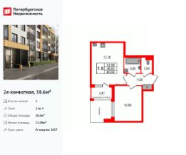 Продается просторная 1-комнатная квартира от застройщика в жилом комплексе ''Univer City'' в на юге Санкт-Петербурга.До метро можно добраться на транспорте всего за 30 минут.Удобная, классическая, функциональная европланировка, большая кухня-гостиная 17.01 м², просторная прихожая 4.19 м². Общая площадь квартиры - 38.57 м², жилая 12.04 м², высота потолка 2.77 м.Квартира продается с отделкой ''NORD LINE WHITE''.Что особенного в ЖК ''Univer City''?• Малоэтажное строительство• Скандинавские фасады с отделкой керамогранитом, акцентные входные группы• Закрытые внутренние дворы без машин• Пешеходный променад с тематическими зонами, еловый сквер и яблоневый сад• Univer Park, включая SetlSport и SetlKids, площадку для выгула собак и зоны отдыха• Инновационный Лицей Setl с оригинальной архитектурной концепцией и уникальной образовательной средой