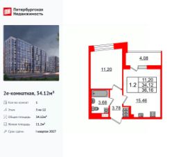 Продается уютная 1-комнатная квартира от застройщика в жилом комплексе ''Бионика Заповедная'' в динамичном Приморском районе.До метро можно добраться на транспорте всего за 11 минут.Удобная, классическая, функциональная европланировка, большая кухня-гостиная 15.46 м², вместительная прихожая 3.78 м². Общая площадь квартиры - 34.12 м², жилая 11.2 м², высота потолка 2.77 м.Квартира продается с отделкой ''Норд Лайн светлый плюс''.Что особенного в ЖК ''Бионика Заповедная''?• Оазис в городе 3 минуты пешком до Новоорловского заказника (140 ГА)• Захватывающие виды из окон на хвойный лесопарк• Всесезонный ''Заповедный парк'' во дворе площадью 23000 кв.м.• 5 единых входных групп с авторским дизайном и лаундж-зонами, сити-виллы на первых этажах с палисадниками и высотой потолков до 4 м• Места притяжения: фонтан ''Бионика'', спортивный кластер со скейт-парком, фотозоны с арт-объектами