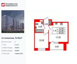 Продается просторная 1-комнатная квартира от застройщика в жилом комплексе ''Бионика Заповедная'' в динамичном Приморском районе.До метро можно добраться на транспорте всего за 11 минут.Удобная, классическая, функциональная европланировка, большая кухня-гостиная 17.2 м², вместительная прихожая 3.5 м². Общая площадь квартиры - 34.86 м², жилая 10.08 м², высота потолка 2.77 м.Квартира продается с отделкой ''Норд Лайн светлый плюс''.Что особенного в ЖК ''Бионика Заповедная''?• Оазис в городе 3 минуты пешком до Новоорловского заказника (140 ГА)• Захватывающие виды из окон на хвойный лесопарк• Всесезонный ''Заповедный парк'' во дворе площадью 23000 кв.м.• 5 единых входных групп с авторским дизайном и лаундж-зонами, сити-виллы на первых этажах с палисадниками и высотой потолков до 4 м• Места притяжения: фонтан ''Бионика'', спортивный кластер со скейт-парком, фотозоны с арт-объектами