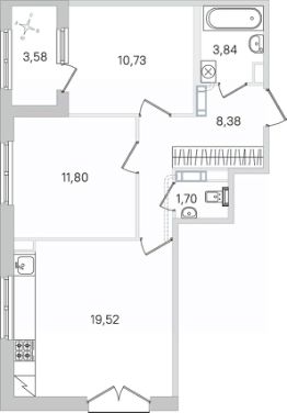 Продается двухкомнатная квартира в ЖК ''BAKUNINA 33'' на 3 этаже. Квартира без отделки, после получения ключей можно делать ремонт. Общая площадь: 72.9 кв.м., жилая: 35.11 кв.м., площадь просторной кухни-столовой: 15.36 кв.м. Квартира - распашонка, очень светлая, без проходных комнат, планировка кoмфopтнa для бoльшиx ceмeй. В квартире одна лоджия, один совмещенный и один раздельный санузел. Высота потолков 3.0 м. Дом монолитный, трехподъездный, высотой 9 этажей. Квартира находится в 1-й секции в корпусе 1. На этаже 7 квартир. В подъезде 1 пассажирский и 1 грузовой лифт. Начало строительства - 2 квартал 2023 года. В настоящее время строительство завершено, дом сдан во 2 квартале 2025 года. Оформление сделки по договору купли-продажи. В шаговой доступности от дома расположены станции метро (расстояние по прямой): ''Площадь Александра Невского'' (700 м), ''Площадь Александра Невского 1'' (700 м), ''Площадь Александра Невского 2'' (800 м), ''Площадь Восстания'' (1.4 км), ''Новочеркасская'' (1.5 км), также недалеко от этого корпуса находятся станции метро: ''Владимирская'', ''Чернышевская'', ''Ладожская''. Клубный дом BAKUNINA 33 - новый стандарт престижной жизни в Центральном районе. В 10 минутах от Невского проспекта и в двух минутах от Синопской набережной и Невы, в благоустроенной и знакомой среде. Локация клубного дома Bakunina 33 - идеальное место для погружения в культурную и светскую жизнь Санкт-Петербурга. В 10-15 минутах на машине почти все знаковые достопримечательности города: Эрмитаж, Русский музей, Александринский и Мариинский театры, БДТ, Таврический парк Казанский собор, Спас на крови и другие величественные дворцы, соборы, музеи, ради которых в город ежегодно съезжаются тысячи гостей. Каждая линия и каждый элемент дизайна дома является частью целостной концепции. Облик здания гармоничный, классически сдержанный с выверенными пропорциями и элегантными формами. Цветовые и архитектурные решения и эркеры придают облику дома легкость, доступную лишь респектабельной классике. Фасады привлекают внимание плавными ритмичными переходами. Вертикальная разбивка колоннами визуально устремляет здание ввысь. Плоскость фасадов декорирована разными элементами из гранита. Ограждение балконов, эркеры и колонны дополнены лаконичным геометрическим орнаментом в акцентном теплом сером цвете. Первые два этажа дома облицованы натуральным гранитом тёмного оттенка. Основной объём здания - выполнен штукатурным фасадом с окраской светлыми тонами из цветовой палитры '' Традиционные цвета Санкт-Петербурга''. Верхний этаж выполнен в стиле мансарды с высотой потолков в квартирах 3,5 метра. Этим достигается цель гармоничного и сомасштабного существования в одном фронте с существующими зданиями.За венчающим карнизом располагаются балконы девятого этажа. Ограждения балконов дополнены геометрическими узорами. Закрытый внутренний двор со сквером и детской площадкой. Острова зелени с водной чашей в центре создают ощущение гармонии и умиротворения. Современная уличная
