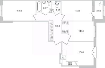 2-комн. квартира от застройщика в Клубный квартал ''Ассамблея'' на 2 этаже. Квартира без отделки, после выдачи ключей можно делать ремонт. Общая площадь: 61.43 кв.м., жилая: 29.63 кв.м., площадь просторной кухни-столовой: 15.6 кв.м. Комнаты изолированные, все окна выходят на одну сторону. В квартире одна лоджия, один совмещенный и один раздельный санузел. Высота потолков 3.0 м. Дом монолитный, трехподъездный, высотой 12 этажей. Квартира находится в 3-й секции в корпусе 4. На этаже 9 квартир. В подъезде 1 пассажирский и 1 грузовой лифт. Начало строительства - 3 квартал 2025 года. Окончание строительства - 3 квартал 2028 года. Оформление сделки по договору долевого участия. В шаговой доступности от жилого комплекса имеются станции метро (расстояние по прямой): ''Горный институт'' (1.0 км), ''Василеостровская'' (1.4 км), ''Приморская'' (1.5 км), также недалеко от этого корпуса расположены станции метро: ''Спортивная'', ''Чкаловская''. ''Клубный квартал Ассамблея'' — проект бизнес-класса на Васильевском острове, в самом сердце исторического Петербурга. Комплекс состоит из пяти корпусов переменной этажности — от 7 до 12 этажей — с выразительной архитектурой в стиле неомодернизма: светлый клинкер, панорамное остекление, просторное лобби с потолками высотой почти 8 метров. Потолки — до 3,2 метров. Подземный паркинг на 667 машиномест. Комфорт и инфраструктура Проект ориентирован на комфортную городскую жизнь. В закрытом дворе — ландшафтное озеленение, современные детские и спортивные площадки. Внутренний клуб для резидентов включает коворкинг, переговорные, кинозал, фитнес и бьюти-зону. IP-домофония с просмотром камер видеонаблюдения, дистанционное открывание дверей и доступа на территорию и в парадную со смартфона и планшета, просмотр показаний счетчиков, приложение для жителей PSK Home. Локация Расположение на Васильевском острове — сильная сторона проекта. До четырех станций метро (''Горный институт'', ''Василеостровская'', ''Спортивная'', ''Приморская'') — 515 минут пешком. В шаговой доступности — зелёные зоны, культурные учреждения, в том числе сад ''Василеостровец'' и ДК имени Кирова. Основные магистрали Большой, Средний и Малый проспекты, Наличная и Уральская улицы. Съезд на ЗСД расположен недалеко от станции метро ''Приморская'', близ береговой линии. Благовещенский и Дворцовый мосты соединяют остров с центром города, а мосты Тучков, Биржевой и Бетанкура — с Петроградской стороной. Застройщик Группа компаний ПСК является одной из ведущих девелоперских компаний Санкт Петербурга. На протяжении 18 лет она возводит в Северной столице качественное жилье премиум, бизнес и комфорт-класса, социальные объекты школы и детские сады, апарт-отели и торговые центры. Является шестикратным обладателем золотого знака ''Надежный застройщик России''. #z6B9wZ