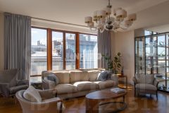 Предлагается к продаже видовая двухуровневая резиденция в историческом центре Санкт-Петербурга, расположенная под крышей знаменитого доходного дома В. П. Лихачёва. Квартира объединяет подлинную архитектуру XIX века и современный дизайн.Высота потолков — 4 м, панорамное остекление открывает виды на канал Грибоедова, Подьяческий мост и купола старого города. Из гостиной площадью 55,6 кв. м с деревянными оконными рамами и индивидуальными коваными люстрами начинается пространство второго уровня — уютного антресольного кабинета с видом на Исаакиевский собор. Просторная круглая спальня с панорамными окнами служит личной смотровой площадкой, открывающей живописные виды на исторический Петербург.Планировкой предусмотрены две изолированные спальни, два санузла, кухня, несколько гардеробных зон и два действующих камина, создающих особую атмосферу уюта. Предусмотрен отдельный выход на чёрную лестницу.Резиденция предлагается с дизайнерской мебелью и элементами антиквариата. Квартира полностью готова к проживанию.Квартира расположена в знаменитом доходном доме В. П. Лихачёва — памятнике архитектуры начала XX века, построенном в 1911 году по проекту графа Константина де Рошефора. Здание выполнено в стиле модернизированного неоклассицизма и отличается художественной выразительностью и историческим достоинством.Дом находится в историческом центре Санкт-Петербурга, на набережной канала Грибоедова — в одном из самых знаковых и культурных районов города. Локация сочетает тишину старинных улиц и непосредственную близость к главным архитектурным ансамблям Северной столицы.В шаговой доступности расположены Мариинский театр, Юсуповский и Мариинский дворцы, Исаакиевский собор и ансамбль Новой Голландии. Район отличается развитой инфраструктурой: рядом находятся театры, музеи, рестораны, бутики и престижные образовательные учреждения.Транспортная доступность обеспечена станцией метро ''Садовая'' (900 м) и строящейся станцией ''Театральная'' (500 м), что делает передвижение по городу максимально удобным.