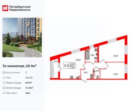 Продается просторная 2-комнатная квартира от застройщика в жилом комплексе ''Прайм Приморский'' в динамичном Приморском районе.До метро можно добраться на транспорте всего за 15 минут.Удобная, классическая, функциональная европланировка, большая кухня-гостиная 20.93 м², просторная прихожая 8.91 м². Общая площадь квартиры - 68.4 м², жилая 31.38 м², высота потолка 2.77 м.Квартира продается с отделкой ''NORD LINE SILVER ВК''.Что особенного в ЖК ''Прайм Приморский''?• Живописные виды на Шуваловский карьер и лесной массив• ''Парящие'' французские балконы• Центральная входная группа• Креативное пространство в центре проекта, летняя терраса для отдыха• Приватные лаундж-зоны на крыше домов (3 корпус)