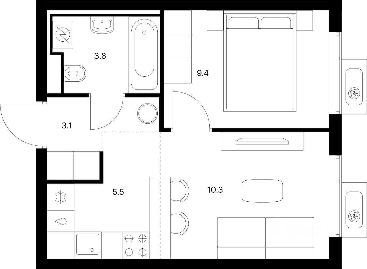 34 м² · Этаж 3 из 10