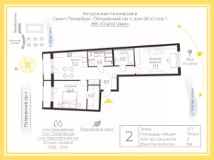Арт. 122489851 Предствляем вашему вниманию квартиру премиум класса в элегантном ЖК Grand View.На 70 метрах реализована концепция безупречного пространства для семейной жизни, где каждая деталь продумана до мелочей. Вас встретит светлая кухня-столовая, панорамное окно которой обращено к умиротворяющему зеленому виду в сторону Крестовского острова. Роскошь и долговечность подчеркивают подоконники и столешница из натурального камня. Комплектация техникой Bosh, гарантирует долговечность в работе. Многоуровневое освещение во всей квартире создает несколько сценариев света - от энергичного утра до романтического вечера. Просторная мастер спальня с собственной вместительной гарделобной станет вашим личных будуаром. А вторая светлая комната с нейтральным дизайном, идеально подойдет как для мальчика, так и для девочки. В квартире продумана комфортная жизнь для семьи с ребенком. Два санузла, один с ванной, второй с душевой кабиной. Теплые полы с подогревом и фильтры для очистки воды. Натуральный пол из паркетной доски. Кондиционеры в каждой спальне. Вся мебель изготовлена на заказ. Это не просто квартира - это готовое решение для жизни в высочайшем стандарте качества.Просто приезжайте и останьтесь!