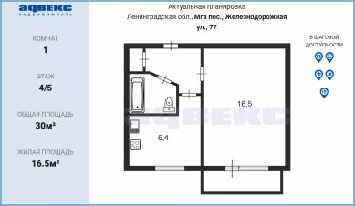 В панельном доме 1971 года постройки на 3/5 этаже, однокомнатная квартира общей площадью 28,6 кв.м., комната 16,4 кв.м. с выходом на балкон, кухня 6,3 кв.м. (плита газовая с духовкой), СУ - совмещенный (установлена ванна), окна деревянные, горячая вода газовая колонка BAXI (новая), имеется встроенный шкаф в прихожей. Входная дверь новая. Мебель и техника остается частично. Фотографии соответствуют. Парадная чистая. Двор зеленый, установлена детская площадка. Парковка во дворе.Вся инфраструктура в пешей доступности: магазин Фасоль (у дома), поликлиника/больница (5 мин/пеш.), две школы (10 минут/пеш.), три детских сад (3-6 мин/пеш.), почта, мини-рынок, ДоДо пицца, Сбербанк, Ветклиника, Дикси, Семишагофф, КБ, РосАл и т.д.Метро Дыбенко 1:50 (маршрутка). Автостанция Мга до 10 мин/пеш.Метро Восстания (ж/д Московский), Ладожская (ж/д Ладожский) 1:10 (электричка)ЖД станция Мга до 5 мин/пеш. Выезд на Мурманское шоссе 25 минут. СПб на авто в среднем 45 минут до КАД.Квартира БЕЗ каких-либо обременений. Собственность с 2017 года, собственники 2 человека (совершеннолетние).Зарегистрированные лица (прописанные) отсутствуют.Встречная покупка комната в Центральном районе СПб. Возможно, прямая продажа (оговаривается индивидуально).