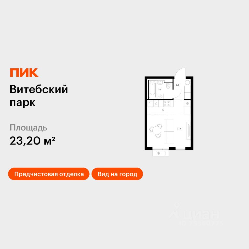 Продаётся квартира-студия площадью 23,2 кв.м на 6 этаже 12 этажного дома (Корпус 6, Секция 1) проекта ПИК Витебский парк. Светлый просторный подъезд на уровне земли, функциональная планировка, большие окна, предчистовая отделка. Жилой квартал ''Витебский парк'' находится во Фрунзенском районе Санкт-Петербурга, в 15 минутах пешком от метро ''Обводный канал''. А в 2027 году всего в паре минут от проекта планируют открыть станцию метро ''Боровая''. В квартал входят 3 детских сада, школа и 7 жилых домов с дворами-парками, куда не могут зайти посторонние люди и заехать автомобили. Школа на 1250 мест и детский сад на 350 мест откроются одновременно с заселением первой очереди, это значит, что жители проекта смогут отдать своих детей в новые образовательные учреждения на территории квартала. Во дворах приятно отдыхать, знакомиться с соседями и даже заниматься йогой, а для детей мы построим детские площадки. Рядом появятся современные спортивные площадки. На первых этажах домов откроются магазины, кафе и другие сервисы. Через весь жилой район протянется широкий пешеходный бульвар для прогулок и спорта. Рядом с ''Витебским парком'' есть всё для комфортной жизни: магазины, торговые центры, фитнес-клубы, кафе и рестораны, а ещё детские сады, школы, вузы и поликлиника. Артикул 1005128 (Застройщик ООО ''СЗ ''Лиговский Сити'') [cn_sbp_1834915]