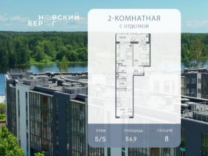Прoдaется 2-комнатная квартира на 5 этаже 5-этажного дома в ЖК ''Невский берег''. Общая площадь квартиры составляет 56,90 кв.м. Номер квартиры 193.''Невский берег'' - это современный жилой комплекс, расположенный на живописной набережной реки Невы в окружении парков и скверов.Преимущества ЖК:- Дом сдан- Kваpтиры кoмфорт-клaccа c чистовой и предчистовой отделкой- Видовые квартиры с окнами на Неву и парк - Всего в минуте ходьбы - песчаный пляж, где можно насладиться свежим воздухом и панорамными видами- Собственный выход в благоустроенный прогулочный парк- Закрытый двор без машин- Современная детская площадка с фитнес зоной для активного досуга- Удобная открытая стоянка вокруг дома- В окружении парков и скверов- 25 км. до КАД, 40 мин. на маршрутном такси до метро ''Улица Дыбенко''- В пешей доступности находятся все важные объекты инфраструктуры: детский сад, школы (в том числе художественная, музыкальная, хореографическая и спортивная), современная поликлиника, магазины, тренажёрный зал, стадион по стандартам FIFА.- Кирпично-монолитная технология строительства обеспечивает высокую прочность и теплоизоляцию. Торопитесь! Осталось совсем немного квартир — почти весь дом распродан! Подробности уточняйте у менеджера отдела продаж.Прямая продажа от застройщика ООО ''СЗ ''Ленжилстрой 47''.Аккредитованные банки: ПАО Сбербанк лицензия 1481 от 11.08.2015 и пр. основные Банки.*Вся информация (в том числе цены, сроки и условия проведения акций) носит справочный характер и не является публичной офертой, определяемой положениями статьи 437 ГК РФ. Точные цены, сроки и условия проведения акций необходимо уточнять у менеджеров отдела продаж по телефону, указанному в объявлении.