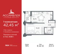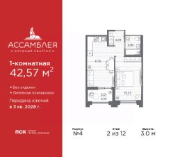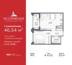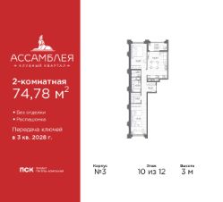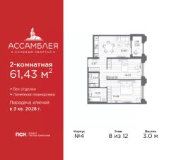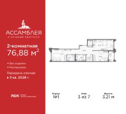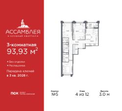 3-комн. квартира в Клубный квартал ''Ассамблея'' на 4 этаже. Квартира без отделки, новый собственник может сделать ремонт по индивидуальному проекту. Общая площадь: 88.11 кв.м., жилая: 38.74 кв.м., площадь просторной кухни-столовой: 21.92 кв.м. Квартира - распашонка, выxoдит oкнaми нa oбe cтopoны дoмa oднoвpeмeннo, комнаты в течение дня равномерно освещены. В квартире одна лоджия, два совмещенных и один раздельный санузел. Высота потолков 3.0 м. Дом монолитный, черырехподъездный, высотой 12 этажей. Квартира находится во 2-й секции в корпусе 5. На этаже 8 квартир. В подъезде 1 пассажирский и 1 грузовой лифт. Окончание строительства - 3 квартал 2028 года. Оформление сделки по договору долевого участия. В шаговой доступности от жилого комплекса имеются станции метро (расстояние по прямой): ''Горный институт'' (1.0 км), ''Василеостровская'' (1.4 км), ''Приморская'' (1.5 км), также недалеко от этого корпуса находятся станции метро: ''Спортивная'', ''Чкаловская''. ''Клубный квартал Ассамблея'' — проект бизнес-класса на Васильевском острове, в самом сердце исторического Петербурга. Комплекс состоит из пяти корпусов переменной этажности — от 7 до 12 этажей — с выразительной архитектурой в стиле неомодернизма: светлый клинкер, панорамное остекление, просторное лобби с потолками высотой почти 8 метров. Потолки — до 3,2 метров. Подземный паркинг на 667 машиномест. Комфорт и инфраструктура Проект ориентирован на комфортную городскую жизнь. В закрытом дворе — ландшафтное озеленение, современные детские и спортивные площадки. Внутренний клуб для резидентов включает коворкинг, переговорные, кинозал, фитнес и бьюти-зону. IP-домофония с просмотром камер видеонаблюдения, дистанционное открывание дверей и доступа на территорию и в парадную со смартфона и планшета, просмотр показаний счетчиков, приложение для жителей PSK Home. Локация Расположение на Васильевском острове — сильная сторона проекта. До четырех станций метро (''Горный институт'', ''Василеостровская'', ''Спортивная'', ''Приморская'') — 515 минут пешком. В шаговой доступности — зелёные зоны, культурные учреждения, в том числе сад ''Василеостровец'' и ДК имени Кирова. Основные магистрали Большой, Средний и Малый проспекты, Наличная и Уральская улицы. Съезд на ЗСД расположен недалеко от станции метро ''Приморская'', близ береговой линии. Благовещенский и Дворцовый мосты соединяют остров с центром города, а мосты Тучков, Биржевой и Бетанкура — с Петроградской стороной. Застройщик Группа компаний ПСК является одной из ведущих девелоперских компаний Санкт Петербурга. На протяжении 18 лет она возводит в Северной столице качественное жилье премиум, бизнес и комфорт-класса, социальные объекты школы и детские сады, апарт-отели и торговые центры. Является шестикратным обладателем золотого знака ''Надежный застройщик России''. #Z6b998