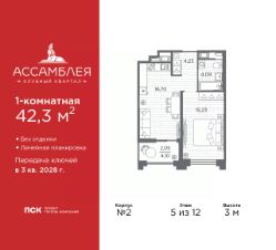 Продается однокомнатная квартира в Клубный квартал ''Ассамблея'' на 1 этаже. Квартира без отделки, новый владелец может сделать ремонт по индивидуальному проекту. Общая площадь: 43.51 кв.м., жилая: 15.23 кв.м., площадь просторной кухни-столовой: 16.91 кв.м. Все окна выходят на одну сторону. В квартире одна лоджия, один совмещенный санузел. Высота потолков 3 м. Дом монолитный, двухподъездный, высотой 12 этажей. Квартира находится в 1-й секции в корпусе 2. На этаже 5 квартир. В подъезде 1 пассажирский и 1 грузовой лифт. Начало строительства - 2 квартал 2025 года. Окончание строительства - 3 квартал 2028 года. Оформление сделки по договору долевого участия. В шаговой доступности от жилого комплекса расположены станции метро (расстояние по прямой): ''Горный институт'' (1.0 км), ''Василеостровская'' (1.4 км), ''Приморская'' (1.5 км), также недалеко от этого корпуса находятся станции метро: ''Спортивная'', ''Чкаловская''. ''Клубный квартал Ассамблея'' — проект бизнес-класса на Васильевском острове, в самом сердце исторического Петербурга. Комплекс состоит из пяти корпусов переменной этажности — от 7 до 12 этажей — с выразительной архитектурой в стиле неомодернизма: светлый клинкер, панорамное остекление, просторное лобби с потолками высотой почти 8 метров. Потолки — до 3,2 метров. Подземный паркинг на 667 машиномест. Комфорт и инфраструктура Проект ориентирован на комфортную городскую жизнь. В закрытом дворе — ландшафтное озеленение, современные детские и спортивные площадки. Внутренний клуб для резидентов включает коворкинг, переговорные, кинозал, фитнес и бьюти-зону. IP-домофония с просмотром камер видеонаблюдения, дистанционное открывание дверей и доступа на территорию и в парадную со смартфона и планшета, просмотр показаний счетчиков, приложение для жителей PSK Home. Локация Расположение на Васильевском острове — сильная сторона проекта. До четырех станций метро (''Горный институт'', ''Василеостровская'', ''Спортивная'', ''Приморская'') — 515 минут пешком. В шаговой доступности — зелёные зоны, культурные учреждения, в том числе сад ''Василеостровец'' и ДК имени Кирова. Основные магистрали Большой, Средний и Малый проспекты, Наличная и Уральская улицы. Съезд на ЗСД расположен недалеко от станции метро ''Приморская'', близ береговой линии. Благовещенский и Дворцовый мосты соединяют остров с центром города, а мосты Тучков, Биржевой и Бетанкура — с Петроградской стороной. Застройщик Группа компаний ПСК является одной из ведущих девелоперских компаний Санкт Петербурга. На протяжении 18 лет она возводит в Северной столице качественное жилье премиум, бизнес и комфорт-класса, социальные объекты школы и детские сады, апарт-отели и торговые центры. Является шестикратным обладателем золотого знака ''Надежный застройщик России''. #26BV6a