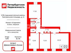 Арт. 129424386 Предлагаем вашему вниманию уютную двухкомнатную квартиру, расположенную по адресу: Санкт-Петербург, Авиаконструкторов проспект, 18к3. Эта комфортная квартира площадью 54 квадратных метра идеально подойдет как для семейной жизни, так и для тех, кто хочет создать пространство под свои индивидуальные нужды. Квартира расположена на первом этаже панельного дома и имеет выполненный косметический ремонт, что позволяет вам сразу же въехать и наслаждаться жизнью. Удобная планировка включает просторный коридор, а также две светлые комнаты площадью 17.4 кв.м. и 11.5 кв.м., что обеспечит вам комфортное проживание и возможность зонирования пространства. Кухня площадью 8.4 кв.м. позволяет разместить всю необходимую технику и создать уютную атмосферу для домашних ужинов.Локация квартиры также радует: всего в пяти минутах пешком находится современный ТЦ LEO MALL, где вы сможете найти все необходимые магазины и развлекательные заведения. Остановка общественного транспорта расположена рядом, что обеспечит вам удобный доступ ко всем частям города. В пределах пешей доступности находится православный Собор, а до ЗСД всего 1 км, что делает поездки за пределы города быстрыми и комфортными.Квартира находится в состоянии ''без обременений'' — прямая продажа, один собственник, никто не зарегистрирован. В собственности более 5 лет, что гарантирует надежность и легкость оформления. Полная цена будет указана в договоре, что обеспечивает прозрачность сделки. Не упустите шанс стать владельцем этой замечательной квартиры в Приморском районе Санкт-Петербурга!