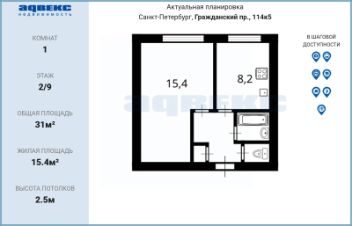 1-к, Гражданский проспект, 15 корп. 3 Показать на карте