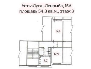 Предлагается к покупке 2 комнатная квартира общей площадью 54,3 кв. м.местонахождение: Кингисеппский район, пос. Усть-Луга, кв. Ленрыба д.15арасположена на 3 этаже 5 этажного жилого домакухня 8,7 кв.м, комнаты раздельные 12,9+17,4+лоджияодин взрослый собственник, без залога, без долгов, рассмотрим любой вариант оплаты: наличные, ипотека, в том числе военная, жилищная субсидияпросмотры по предварительной договоренностизвонить в рабочие дни с 10/00 до 18/00, в остальное время пишите в чат