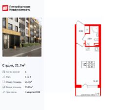 Продаётся Студия в ЖК Кинопарк от застройщика Холдинг ''РСТИ'' (Росстройинвест).Квартира находится в 9 этажном доме, в Очередь 2, Корпус 1 на 6 этаже. Общая площадь квартиры 22,07 кв.м.''Кинопарк'' — современный жилой комплекс, в котором главную роль играете Вы! Здесь возможен любой желанный сценарий жизни. Продуманные планировки, закрытые уютные дворы, развитая инфраструктура квартала — всё это обеспечит высокий уровень комфорта и будет вдохновлять на новые свершения. ''Кинопарк'' у парка ''Новознаменка'' возводится на бывшей территории ''Ленфильма''. Тема кино найдет отражение в отделке мест общего пользования и благоустройстве территории. ИнфраструктураЖилой комплекс расположен в обжитой части Красносельского района рядом есть магазины, детские сады, школы и другая необходимая инфраструктура. Напротив комплекса находится парк ''Новознаменка'', в шаговой доступности еще четыре парка и два сквера.Варианты отделкиПолная отделка Comfort в современном дизайне. Предчистовая отделка (white box) будут выполнены все грязные работы, клиенту останется нанести последние штрихи. Квартиру также можно приобрести без отделки.