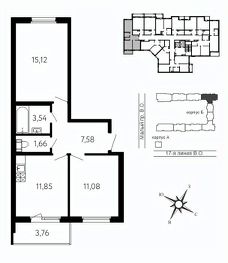 Локация, выбранная для строительства ЖК ''17 линия'', по праву считается лучшей на Васильевском острове. Это не просто адрес, а стиль жизни, в окружении культурногонаследия и ритме современного мегаполиса.Жилой комплекс находится в пешей доступности до двух станций метро и набережной Невы, а также в десяти минутах езды до исторического центра и ЗСД.Пешком:15 минут Метро ''Василеостровская''17 минут Метро ''Горный институт''10 минут Малая Нева5 минут АртмузаНА АВТО10 минут Дворцовая площадь8 минут Выезд на ЗСД