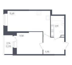 В продаже студия в корпусе 39 ЖК 'Живи! В Рыбацком'. Квартира располагается на 12 этаже, общая площадь 24.58 м2.