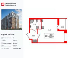 Продается просторная студия от застройщика в жилом комплексе ''Астра Континенталь'' в активно развивающимся Невском районе.До метро можно добраться пешком всего за 5 минут.Удобная, классическая, функциональная европланировка, вместительная прихожая 3.06 м². Общая площадь студии - 24.64 м², жилая 18.01 м², высота потолка 2.77 м.Квартира продается с отделкой ''Норд Лайн светлый плюс''.Что особенного в ЖК ''Астра Континенталь''?• Уникальная локация 400 метров до метро, 300 метров до благоустроенной набережной• Самодостаточный квартал со всей инфраструктурой в 3-х км от центра• Впечатляющий объем благоустройства: 30 000 кв. метров рекреационных зон с променадом и гейзерными фонтанами• Масштабный парк ''Город Спорта''